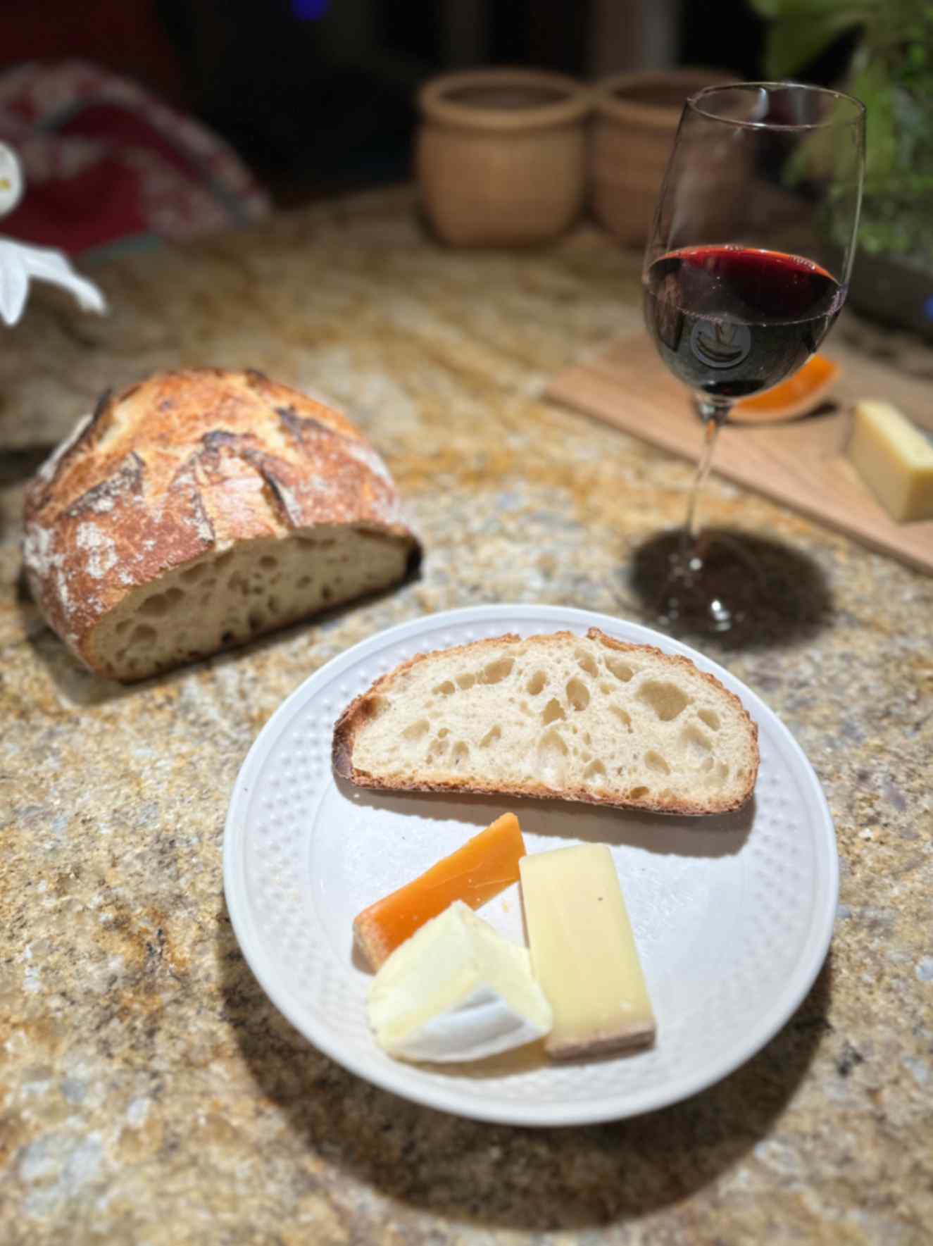 You will learn how to feed your starter; mix, fold, shape, and proof your dough; and bake the bread. You will enjoy freshly baked bread with an assortment of cheeses and of course some nice wine. Come with an appetite!